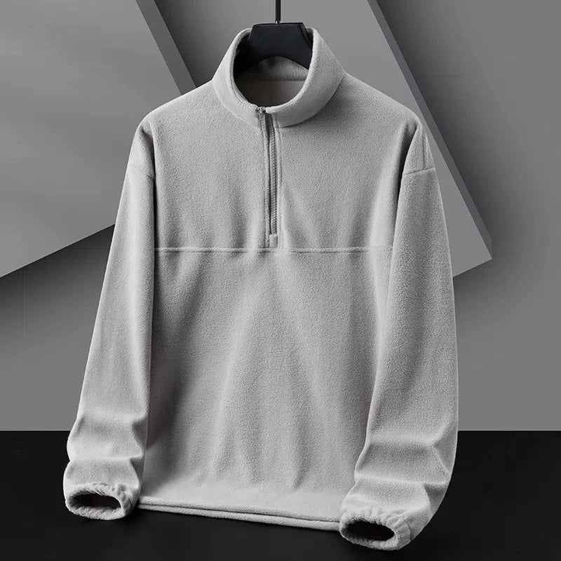 Switch between a spread collar and a mock neck with this quarter zip sweater blended in a relaxed silhouette made of soft and smooth fleece.