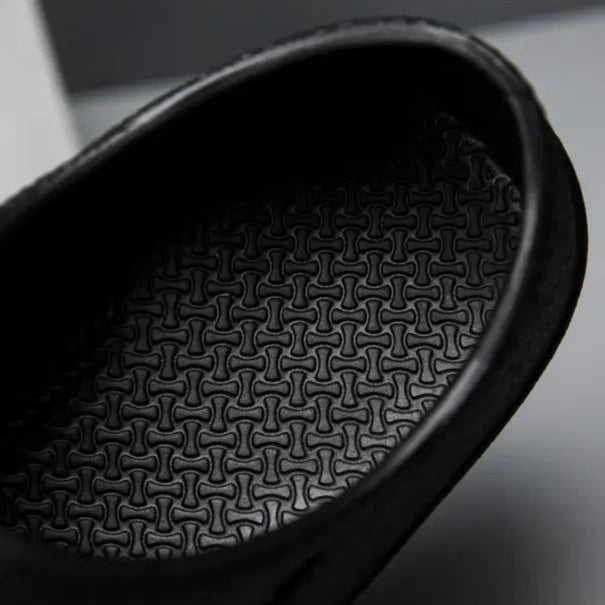 With a textured leather finish and anti-slip sole, these loafers provide water-resistant comfort and exceptional safety. The comfortable insole and unique design make them perfect for dressing up or down.