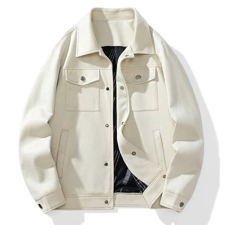 Soft suede and a comfortable fit, this jacket creates a refined silhouette with classic chest pockets and a snap button closure. Perfect for nights out, it pairs effortlessly with a simple tee for a laid-back look.
